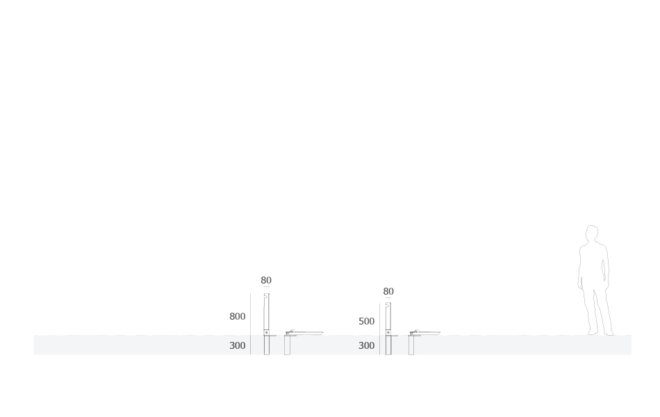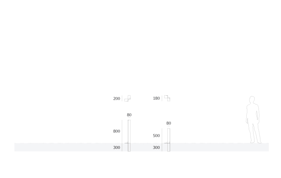 Método de fijación permanente. Consiste en la fijación directa de la pieza directamente a la cimentación de hormigón. Se realiza una ligera deformación en la región de la pieza que se incrusta en el suelo para evitar eventuales extracciones ilícitas.