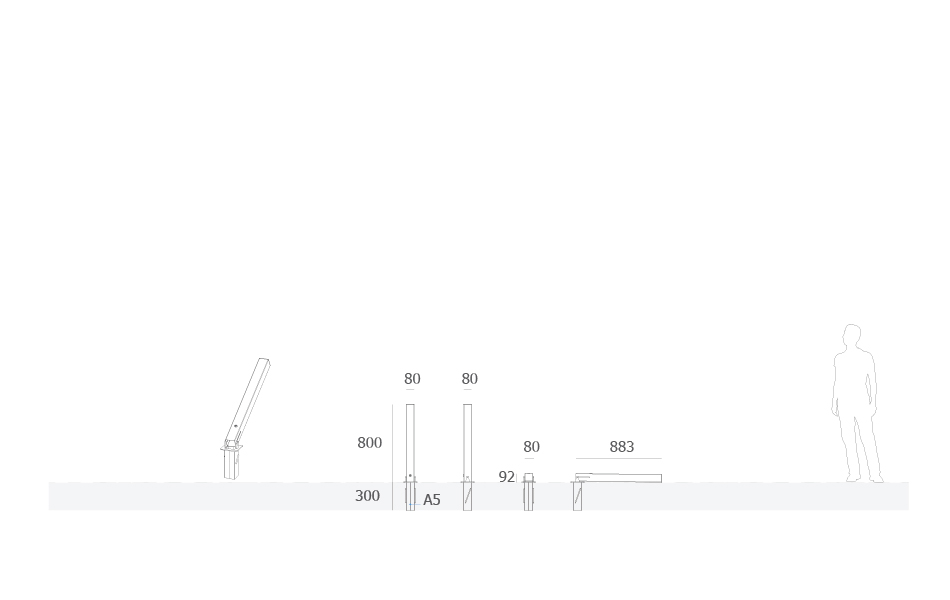 Méthode de fixation permanente. Il consiste en la fixation directe de la piéce directement sur la fondation en béton. Une légère déformation est effectuée dans la région de la piéce qui est enfoncée dans le sol pour empêcher tout enlèvement illicite.